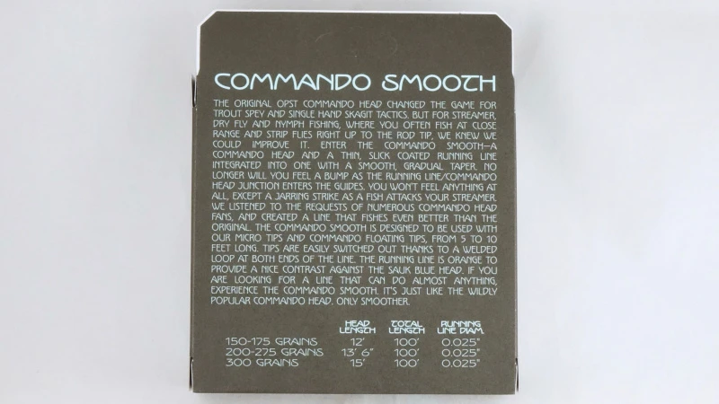 Commando Smooth est une ligne avec une ligne de course et une crosse intégrées à revêtement fin, parfaite pour ceux qui ne veulent pas utiliser une ligne de tir séparée et qui ont toujours une crosse Commando Head. Depuis la sortie de la Commando Head d’Ed Ward il y a un peu plus de trois ans, elle est devenue l’un de nos produits les plus vendus. Ce n’est pas vraiment une surprise car cela a permis aux gens de pêcher des mouches beaucoup plus grosses, sur des cannes plus légères, dans plus d’endroits qu’ils n’auraient jamais cru possible. Beaucoup de gens, cependant, les pêcheurs de truites en particulier, ont souhaité qu’il n’y ait pas de jonction maladroite dérangeante entre le Commando Head et la ligne de course. Ed Ward a maintenant résolu ce problème…Entrez dans le Commando SMOOTH : une tête de tir entièrement intégrée et un système de ligne de course mono mince et revêtue. Parfait pour la pêche à la truite et pour la pêche à courte distance. Avec seulement 0,635 mm/0,025″ de diamètre, la ligne de course tire presque aussi bien qu’en mono, mais elle flotte plus haut et beaucoup de gens la trouveront plus facile à manipuler. La tête est la même bonne vieille tête Commando, avec une connexion transparente à la ligne de course. C’est une formule assez simple, et qui plaira à tous ceux qui ont acheté une tête Commando originale.