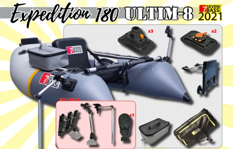 Développé à l’origine pour le marché nord-américain, l’Expedition est le plus grand float tube de la gamme SBD. L’Expedition a tous les avantages d’un hybride : installation rapide, facilité d’entretien et hautement personnalisable. Pesant environ 8 kg / 18 lb, les chambres en forme de V offrent une plus grande flottabilité et sont équipées de valves de sommet pour un gonflage efficace. Il est équipé d’un support de moteur de pêche à la traîne, afin que les pêcheurs puissent monter rapidement et efficacement un moteur de pêche à la traîne de 40 lb. Ce modèle se démarque grâce à sa taille formidable et sa capacité de poids de 180 kg/ 450 lb.L’Expedition Flex bénéficie de la Clipline, un système de sangles en nylon et de bandes Velcro qui s’étend sur toute la longueur du modèle pour ancrer équipement libre ou jusqu’à quatre sacoches latérales CARGO FLEX. Un siège Dropstitch positionné en hauteur offre un plus grand confort et un meilleur soutien pour les sessions de pêche prolongées. Il y a deux porte-cannes à l’arrière et le tablier a une poche zippée pour un accès direct aux petites boîtes à pêche. Le rangement de la banquette arrière est idéal pour placer un bakkan de pêche pour la batterie du moteur de pêche à la traîne. Des sangles de sac à dos sont incluses pour faciliter le transport une fois gonflé.Le concept Ultim-8 de Seven Bass Design est directement issu de l’expérience utilisateur et des retours qu’ils ont pu recueillir partout dans le monde, que ce soit par tout leur personnel ainsi que les utilisateurs finaux de leurs produits, des USA à l’Italie, du Canada au Portugal, de la Suède au Japon, en passant par l’Allemagne ou les pays de l’Est, sans oublier bien sûr la France. C’est vraiment l’aboutissement d’un processus utilisateur dans toute sa profondeur.Le constat est le même partout quand on parle de pêche des carnassiers en float tube :“OUI, LE FLOTTEUR LE TUBE C’EST TRÈS IMPORTANT, MAIS L’ACCESSORISATION L’EST TOUT AUSSI !Le Concept ULTIM-8 est donc principalement axé sur ça : Expérience utilisateur.Tous les produits de la gamme ULTIM-8 sont donc équipés de la manière suivante afin d’être accessoirisés de la manière la plus simple possible par les pêcheurs :Tous les modèles avoir 5 Plug & Bases de Go :• 2 Plug & Base Go Low Profile placée directement devant vous, sur le côté du tablier.Ils ont disposé les bases LOW PROFILE, car si vous ne les utilisez pas, la hauteur de ces bases ne vous gênera jamais• 3 Plug & classiques Go base à double entrée :2 de chaque côté à l’avant, et une à l’arrière.De même, tous les modèles disposent d’un support moteur, situé soit à l’arrière droit, soit complètement à l’arrière selon modèle.Tous les modèles sont équipés du système CLIP LINE, et sont livrés directement avec :• un sac FLEX CARGO XL, sac en PVC avec la plus grande capacité de stockage de toute la gamme CARGO FLEX SYSTEM : 52 cm de long, 28 cm de large et 20 cm de haut génère près de 30 litres !• un BAKKAN SYSTEM L, le plus grand bakkan compatible clip line, avec ses 13,2 litres de stockageVersion FULL PACK.Cette version est un parfait complément de la base version, avec en plus 4 accessoires considérés comme indispensables pour tout float-tube respectable :• 2 adaptateurs Low Profile, utilisés pour connecter tous les plug & Allez les accessoires avec les bases Low Profile• Un porte-cannes R-VOLUTION 3 permettant de charger 3 cannes simultanément, en spinning et en casting, et rotatif à 360 ° sur un plan horizontal et 90 % sur un plan vertical• Un support de sondeur avec support de sonde multi-positions et inclinable• Un support GO-CAM pour recevoir des caméras, caméras ou « action cams » pour immortaliser vos sessionsLongueur 180 cmLargeur 120 cm Ø ; chambres à air 34,5Nb. de chambres à air 2Poids 8 kgMax. charge 180 kgPolyester deniers 1’000DStyles Clip Line + tablier Bolt SystemPropriétés Siège DropstitchMatières PVC EnduitÉpaisseur 0,7 mm / 0,276 pouceMax. Pression 3,6 Psi / 0,25 BarNb. de personnes 1