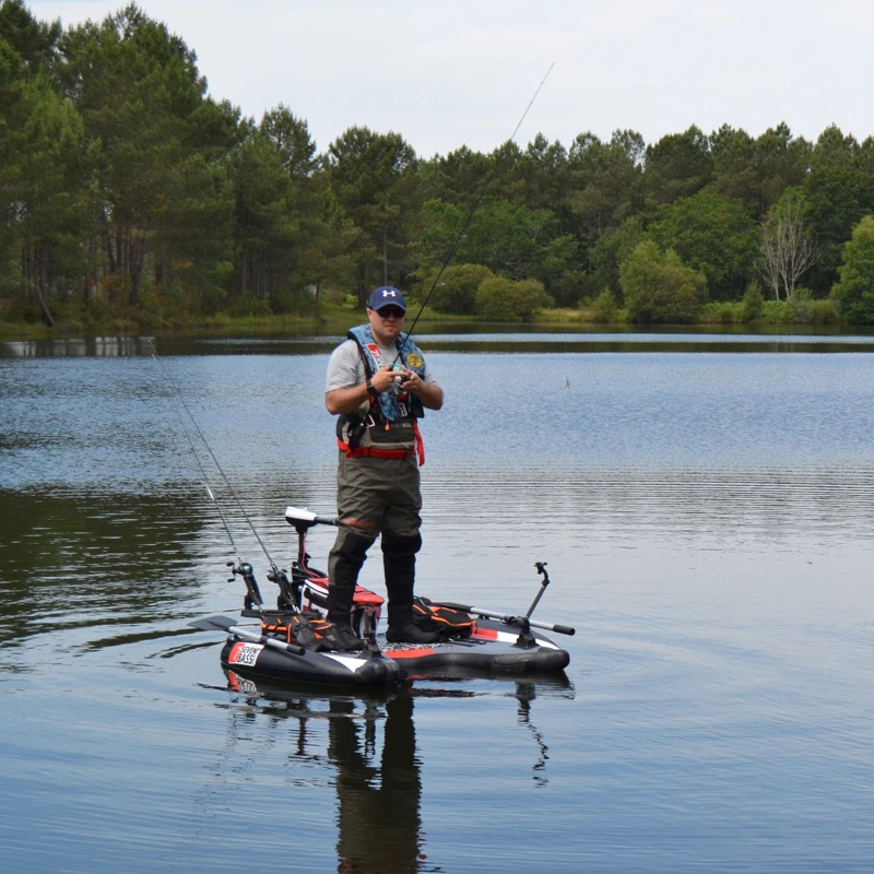 Ultime évolution de ce qui se fait sur ce type de produits innovants, le Flatform Junior n’a pas de structure rigide.Le Flatform Junior, comme ses grands frères, est composé de 3 parties. Sur les côtés se trouvent des rouleaux en PVC renforcé et enduit. Mais cette partie centrale est réalisée en 3D Mesh, le dropstitch Seven Bass Air ! Le dropstich est une maille très fine de fils polyester permettant de conserver la forme souhaitée une fois l’ensemble gonflé. Cette structure en mesh rigidifie l’ensemble pour que votre Flatform Junior ne ressemble pas à un gros ballon une fois gong ! C’est la technique dite du « dropstitch ».Cette réalisation vous permettra toutes les extravagances que vous n’avez jamais imaginées avec un float tube…. En effet, vous profiterez d’une place est d’une stabilité qui vous permettra même de pêcher debout sur votre FLATFORM JUNIOR, malgré ses 1,70m de long et 1,55m de large !Sa fabrication est de la meilleure qualité qu’il est et l’équipement est très complet avec des avirons sur les boudins latéraux, ce qui leur permet d’avoir les dames de remorquages plus hauts, des sacoches latérales avec leur système CLIPLINE, un sternum pour installer un moteur électrique.Le Flatform Junior est livré « Plug & Go Ready » : trois bases « Plug & Go » sont déjà installées, vous n’avez plus qu’à équiper votre bateau comme vous le souhaitez avec le support sonar, GoCam Mount, porte canne, etc… Question navigation elle bénéficie également du » Bat Wing » entre les pattes qui viendra casser la vague qui se créera lorsque l’on naviguera sur le moteur électrique, nous avons également rajouté du » rocker » sur les deux pointes pour faciliter la navigation et la glisse dessus l’eau quand un petit clapot se lève !Nous l’avons également équipé de notre « système CLIPLINE » qui vous permettra de sécuriser votre « flex cargo side bags » ou autres accessoires, nous avons modifié le support moteur pour plus de sécurité.Sur la coque, deux petits ailerons sont positionnés en permanence sous les boudins latéraux, tandis qu’un grand aileron amovible est situé au niveau l’arrière, avant le poste moteur.Rangé dans son sac de transport, il se glisse facilement dans le coffre d’une voiture. Gonflé en quelques minutes, il est parfaitement rigide grâce à son épaisseur importante de plus de 16cm (6′) gonflé à une pression maximale de 15 psi pour la partie dropstich, et 3 psi sur les côtés PVCLe Flatform Junior est le summum de ce que vous pouvez trouver en float tube sur le marché mondial, et c’est pourquoi lors du salon international de l’EFTTEX 2019 à Bruxelles, il a remporté 2 Awards :BEST FLOATING APPAREL saison 2019 -2020VISITOR’S CHOICE saison 2019-2020• Longueur : 170 cm• Largeur : 155 cm• Poids : 15 kg• Charge max. : 180 kg• Compositions : Dropstitch 15 cm en 2700g/m²• Deniers polyester : 1’000D• Max. Pression: 15 Psi / 1 Bar (dropstitch) 3,6 Psi / 0,25 Bar (PVC latéral)• Nombre de personnes : 1• Avirons : 2