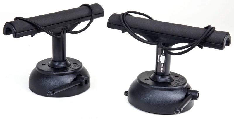 Convient à tous les véhicules – Aluminium, Acier, Plastique. Bases d’aspiration douces qui n’endommageront pas la surface. La barre en « T » arrondie et les cordons de choc permettent de monter les tiges à n’importe quel angle, pas seulement en ligne avec la base. Les Cannes sont sécurisées par des sangles recouvertes de tissu pour plus de sécurité, il y avait aussi un rembourrage doux pour les tiges. Tous les racks sont entièrement testés sous vide avant leur expédition par VAC RAC. Lors des tests, chaque rack a soulevé plus de 40 kg.
