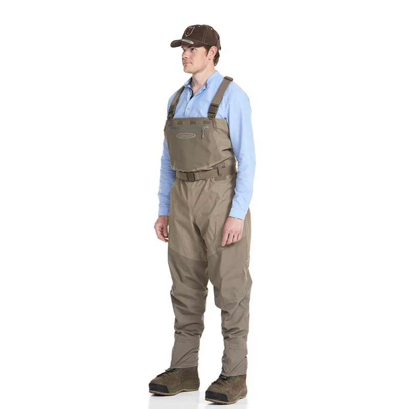 Le wader Koski est fabriqué à partir de matériaux doux et confortables. Le matériau plus épais de la partie inférieure arrive jusqu’à vos cuisses, ce qui rend ce wader solide. La poche avant résistante à l’eau est fabriquée à partir de tissu Wader et comporte une fermeture éclair YKK AquaGuard résistante à l’eau. Il y a des boucles de fixation pour accessoires des deux côtés de la poche et une sangle pour accessoires à l’extrémité supérieure de la poche, à l’extérieur et à l’intérieur, afin que vous puissiez attacher de nombreux outils utiles à ce cuissarde. Ce cuissarde est livré avec une poche en TPU transparent imperméable qui est amovible et idéale pour votre téléphone et vos clés de voiture. Il y a un velcro solide pour une fixation facile et rapide et deux cordons de fixation avec crochets pour sécuriser cette poche.Ces cuissardes sont Koski Small Sock avec une petite chaussette qui est parfaite pour les femmes ou les personnes aux petits pieds.• Construction légère à 4 couches• Tissu F4 imperméable et respirant• Coupe incurvée NoSeam pour un ajustement parfait• Une grande poche étanche à l’avant• Étanche & amp; poche amovible en TPU• anneaux en D et amp ; boucles et sangles pour accessoires• 2 passants de ceinture robustes• Pare-graviers intégrés• Pieds en néoprène avec design côté gauche et côté droit• Boucles de séchage• Fabriqué en Corée